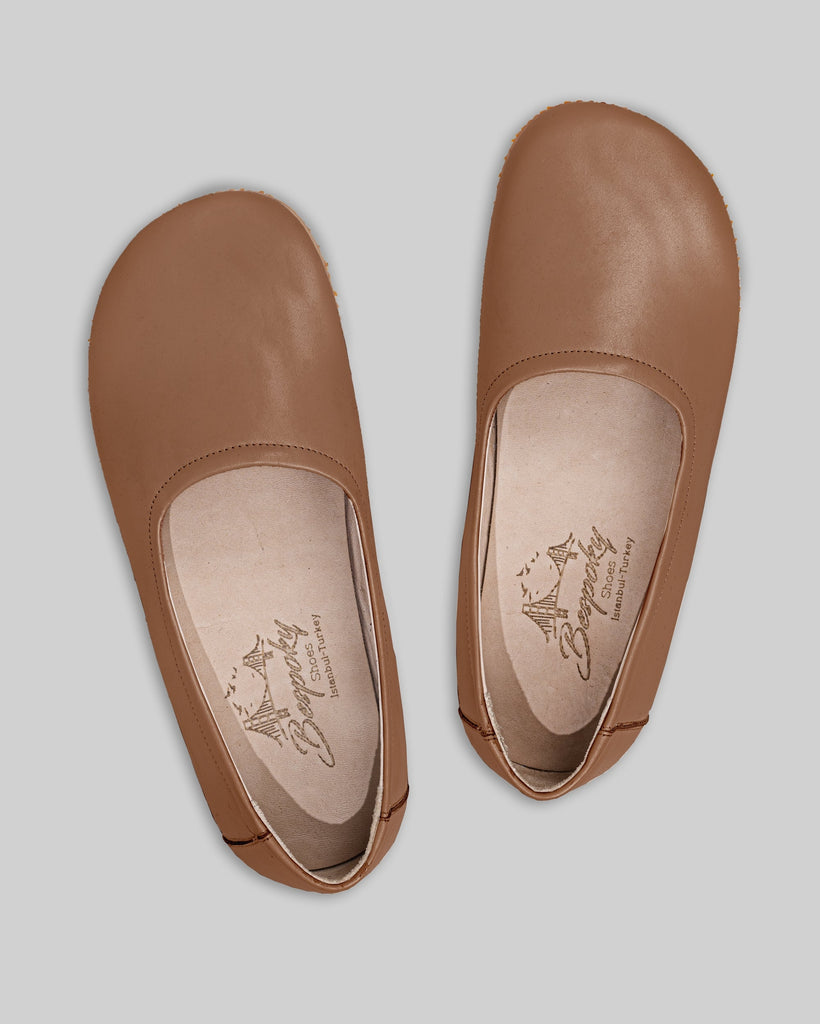 Tulip Tan Color Artisan Handcrafted Genuine Leather Zero Drop Barefoot Flat Ballet Shoes For Women | Wide Toe Box | Flexible Sole | Zero Drop | Lightweight | Breathable | Eco-Friendly | Grounding Shoes | Minimalist Shoes
