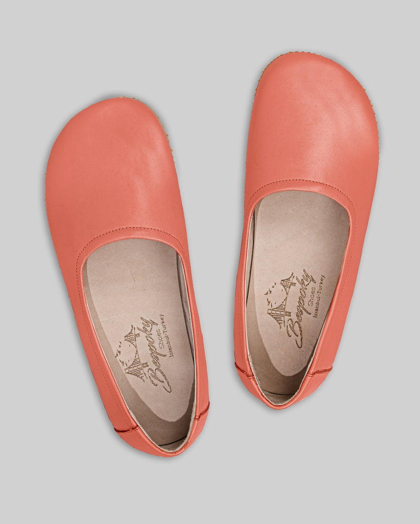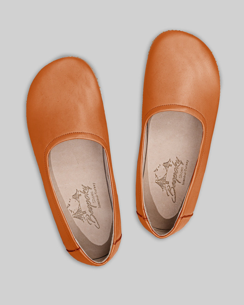 Tulip Orange Color Artisan Handcrafted Genuine Leather Zero Drop Barefoot Flat Ballet Shoes For Women | Wide Toe Box | Flexible Sole | Zero Drop | Lightweight | Breathable | Eco-Friendly | Grounding Shoes | Minimalist Shoes