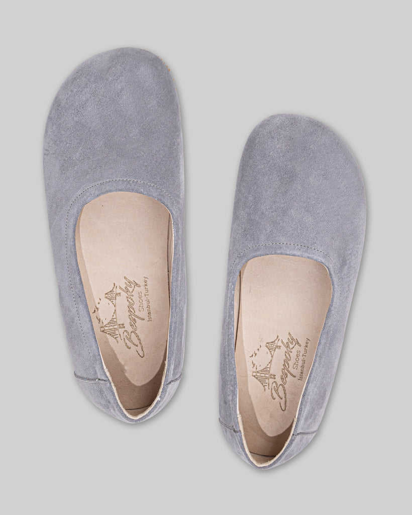 Tulip Grey Color Artisan Handcrafted Genuine Leather Zero Drop Barefoot Flat Ballet Shoes For Women | Wide Toe Box | Flexible Sole | Zero Drop | Lightweight | Breathable | Eco-Friendly | Grounding Shoes | Minimalist Shoes