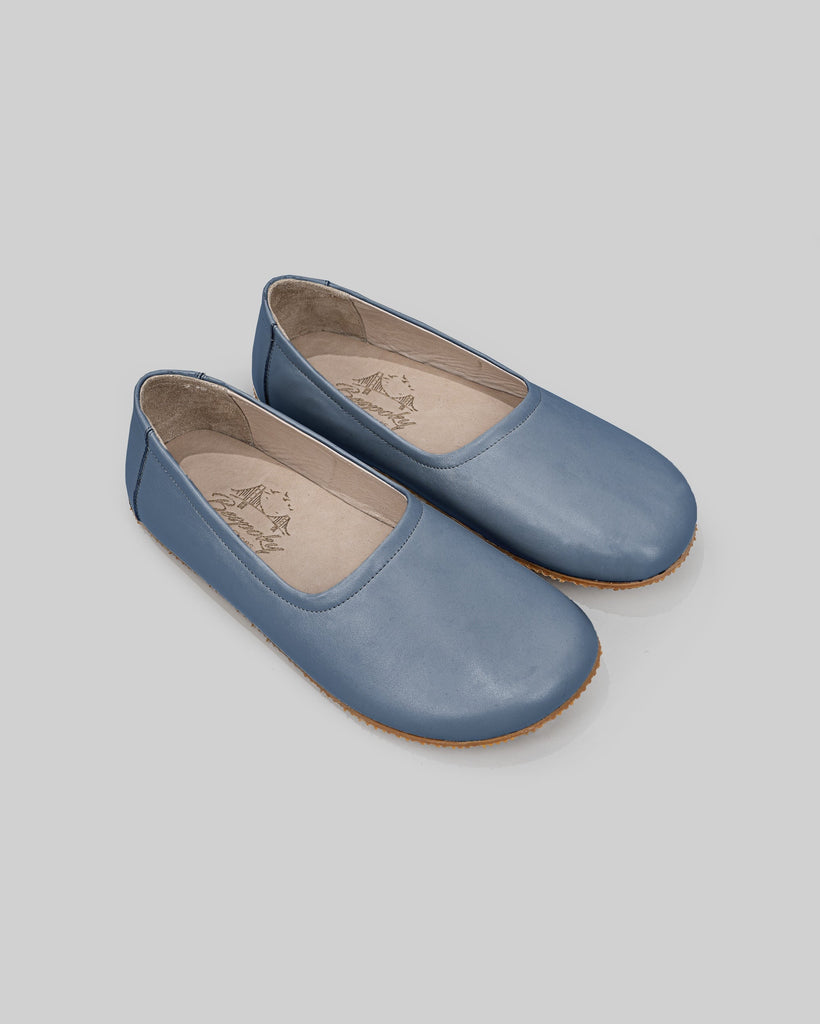 Tulip Jean Blue Color Artisan Handcrafted Genuine Leather Zero Drop Barefoot Flat Ballet Shoes For Women | Wide Toe Box | Flexible Sole | Zero Drop | Lightweight | Breathable | Eco-Friendly | Grounding Shoes | Minimalist Shoes