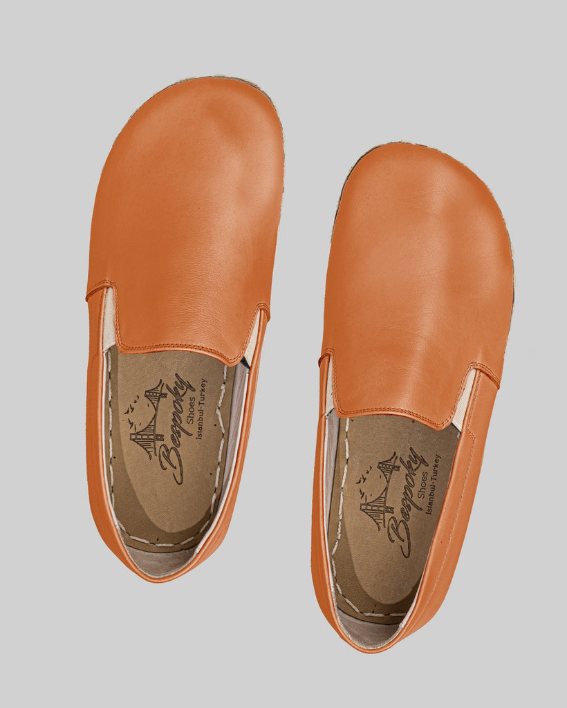 Eminonu Orange Color Artisan Handcrafted Genuine Leather Grounding Barefoot Shoes For Women | Wide Toe Box | Flexible Sole | Zero Drop | Lightweight | Breathable | Eco-Friendly | Grounding Shoes | Minimalist Shoes