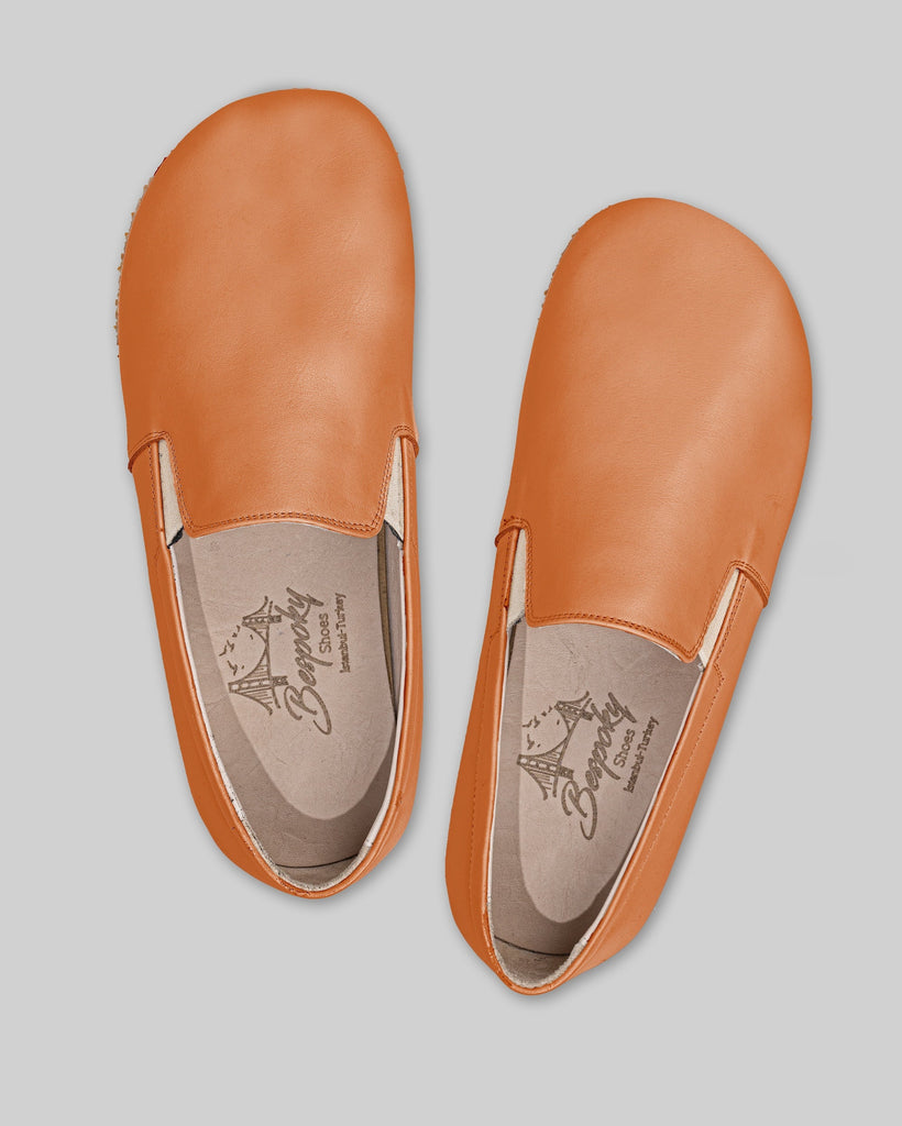 Eminonu Orange Color Artisan Handcrafted Genuine Leather Zero Drop Barefoot Shoes For Women | Wide Toe Box | Flexible Sole | Zero Drop | Lightweight | Breathable | Eco-Friendly | Grounding Shoes | Minimalist Shoes