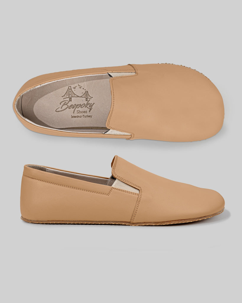 Eminonu Tan Color Artisan Handcrafted Genuine Leather Zero Drop Barefoot Shoes For Women | Wide Toe Box | Flexible Sole | Zero Drop | Lightweight | Breathable | Eco-Friendly | Grounding Shoes | Minimalist Shoes
