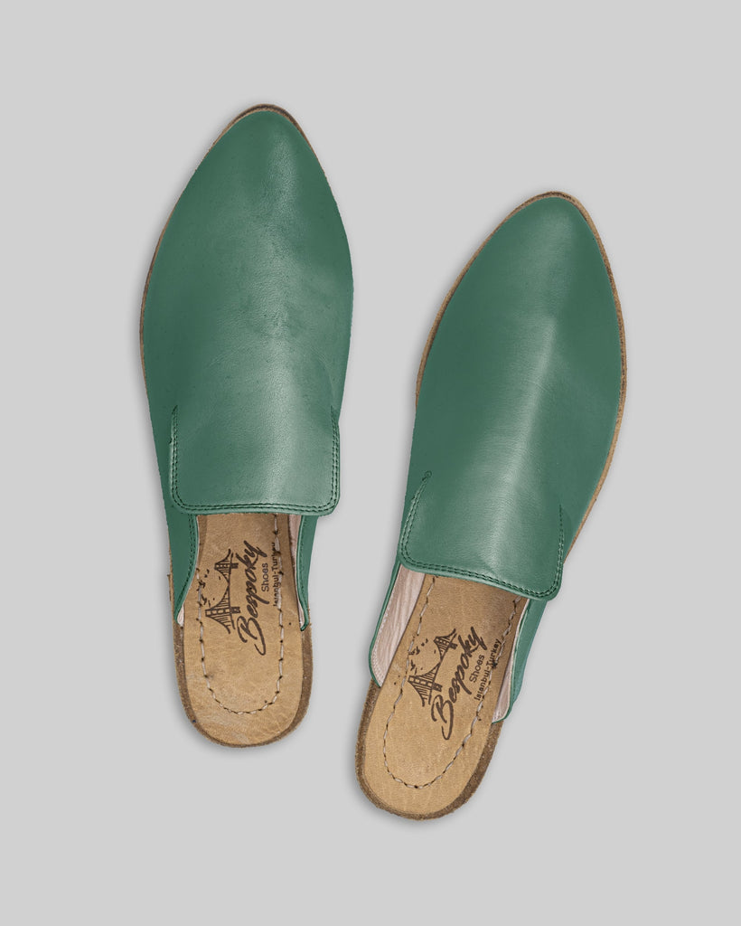 Salda Green Color Artisan Handcrafted Genuine Leather Grounding Pointed Toe Slipper For Women | Wide Toe Box | Flexible Sole | Zero Drop | Lightweight | Breathable | Eco-Friendly | Grounding Shoes | Minimalist Shoes