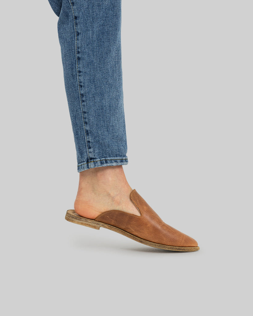Salda Dark Tan Color Artisan Handcrafted Genuine Leather Grounding Pointed Toe Slipper For Women | Wide Toe Box | Flexible Sole | Zero Drop | Lightweight | Breathable | Eco-Friendly | Grounding Shoes | Minimalist Shoes
