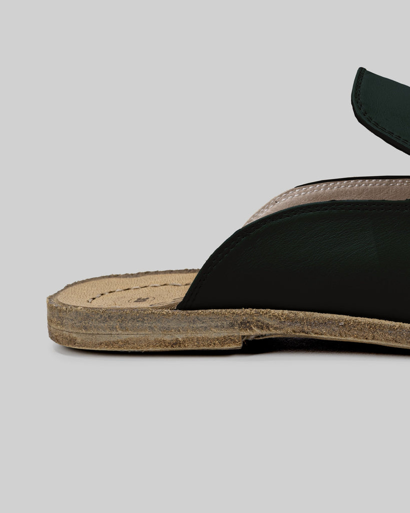 Salda Dark Green Color Artisan Handcrafted Genuine Leather Grounding Pointed Toe Slipper For Women | Wide Toe Box | Flexible Sole | Zero Drop | Lightweight | Breathable | Eco-Friendly | Grounding Shoes | Minimalist Shoes