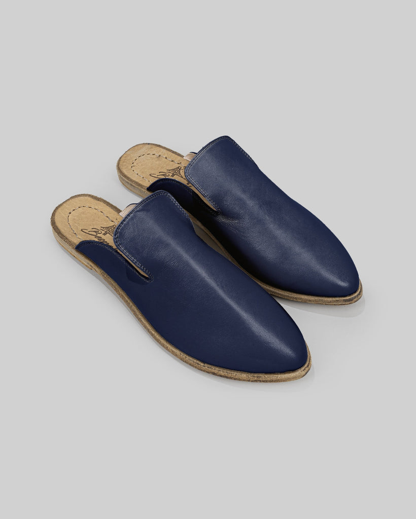 Salda Navy Blue Color Artisan Handcrafted Genuine Leather Grounding Pointed Toe Slipper For Women | Wide Toe Box | Flexible Sole | Zero Drop | Lightweight | Breathable | Eco-Friendly | Grounding Shoes | Minimalist Shoes