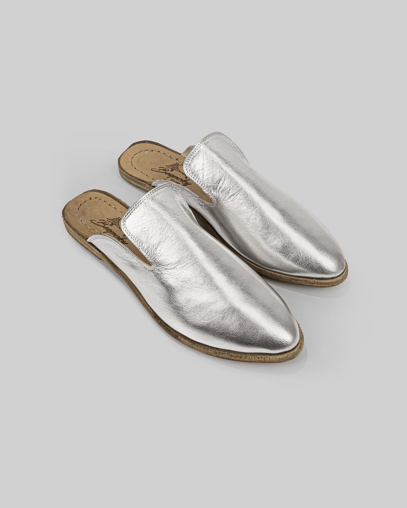 Salda Silver Color Artisan Handcrafted Genuine Leather Grounding Pointed Toe Slipper For Women | Wide Toe Box | Flexible Sole | Zero Drop | Lightweight | Breathable | Eco-Friendly | Grounding Shoes | Minimalist Shoes