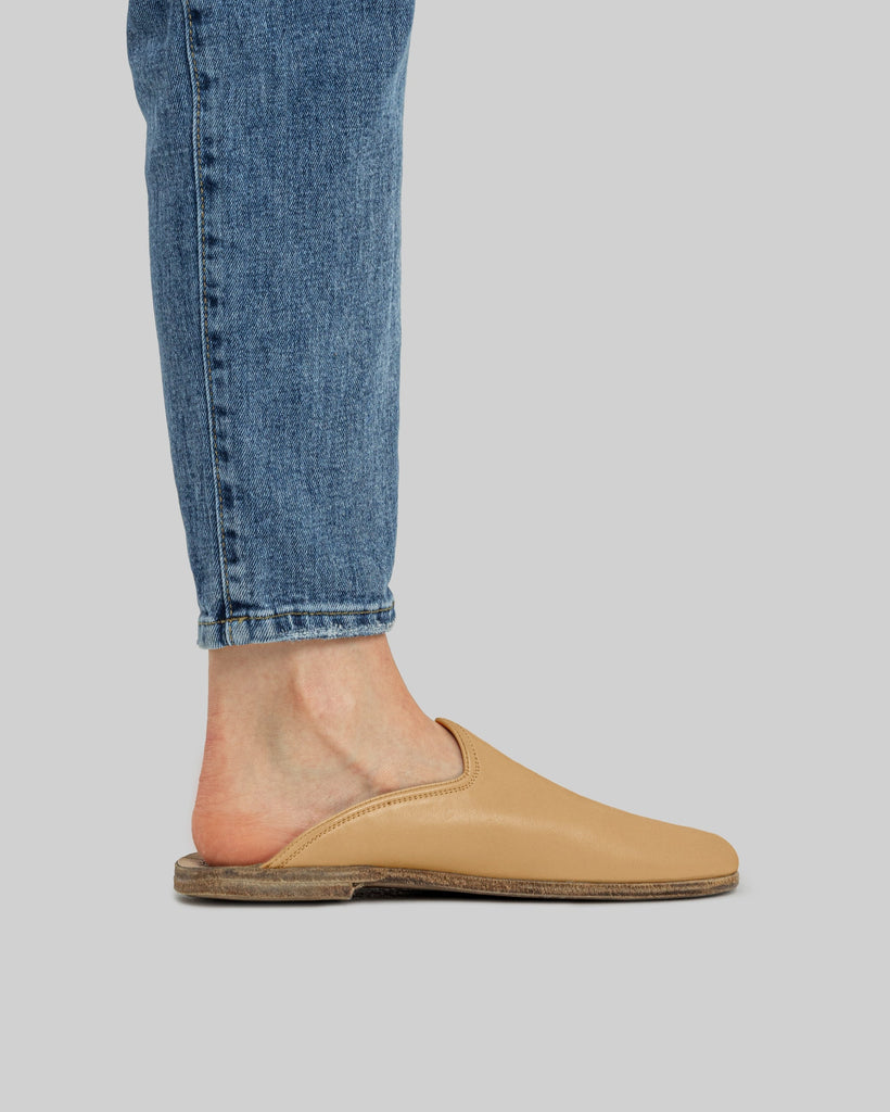 Golden Horn Lucas Beige Color Artisan Handcrafted Genuine Leather Grounding Barefoot Shearling Slipper For Women | Wide Toe Box | Flexible Sole | Zero Drop | Lightweight | Breathable | Eco-Friendly | Grounding Shoes | Minimalist Shoes