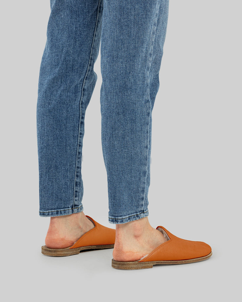 Golden Horn Orange Color Artisan Handcrafted Genuine Leather Grounding Barefoot Shearling Slipper For Women | Wide Toe Box | Flexible Sole | Zero Drop | Lightweight | Breathable | Eco-Friendly | Grounding Shoes | Minimalist Shoes