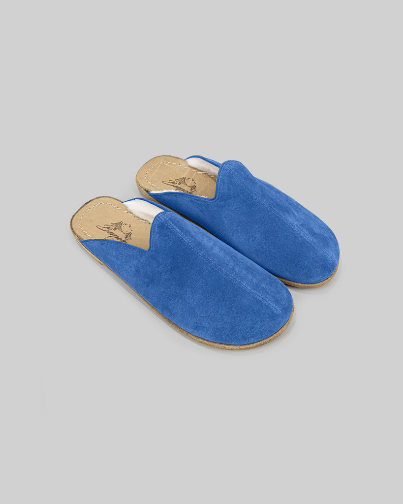 Golden Horn Blue Color Artisan Handcrafted Genuine Leather Grounding Barefoot Shearling Slipper For Women | Wide Toe Box | Flexible Sole | Zero Drop | Lightweight | Breathable | Eco-Friendly | Grounding Shoes | Minimalist Shoes