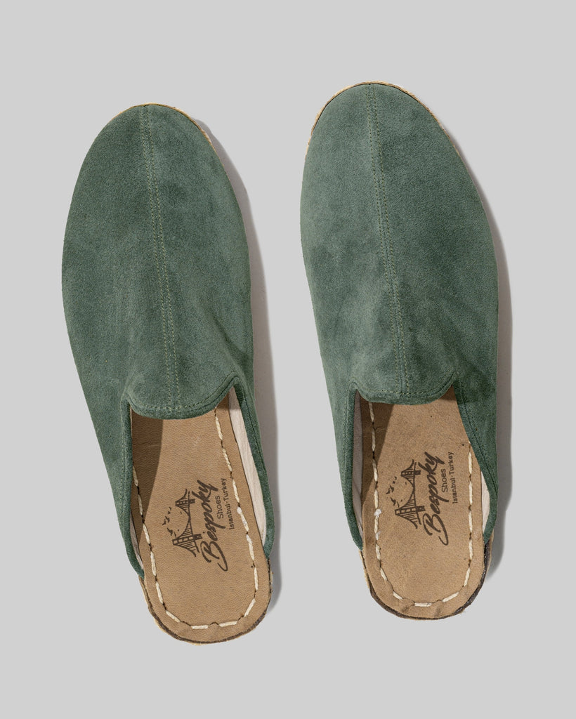 Side Green Color Artisan Handcrafted Suede Genuine Leather Zero Drop Slippers For Women | Wide Toe Box | Flexible Sole | Zero Drop | Lightweight | Breathable | Eco-Friendly | Grounding Shoes | Minimalist Shoes