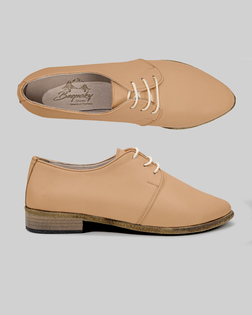 Mina Undyed Artisan Handcrafted Genuine Leather Grounding Pointed Toe Oxford Shoes For Women | Wide Toe Box | Flexible Sole | Zero Drop | Lightweight | Breathable | Eco-Friendly | Grounding Shoes | Minimalist Shoes