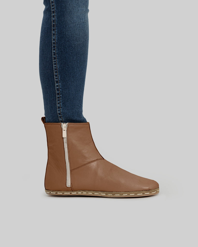 Cappadocia Tan Color Artisan Handcrafted Genuine Leather Zero Drop Barefoot Chelsea Boot For Women | Wide Toe Box | Flexible Sole | Zero Drop | Lightweight | Breathable | Eco-Friendly | Grounding Shoes | Minimalist Shoes