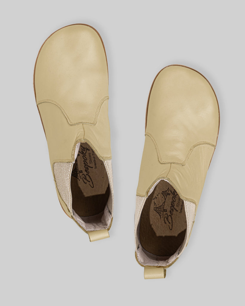 Cappadocia Lucas Beige Color Artisan Handcrafted Genuine Leather Zero Drop Barefoot Chelsea Boot For Women | Wide Toe Box | Flexible Sole | Zero Drop | Lightweight | Breathable | Eco-Friendly | Grounding Shoes | Minimalist Shoes