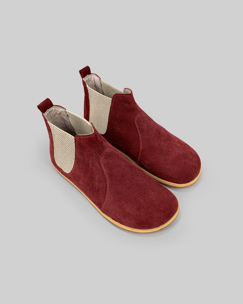 Cappadocia Burgundy Color Artisan Handcrafted Genuine Leather Zero Drop Barefoot Chelsea Boot For Women | Wide Toe Box | Flexible Sole | Zero Drop | Lightweight | Breathable | Eco-Friendly | Grounding Shoes | Minimalist Shoes