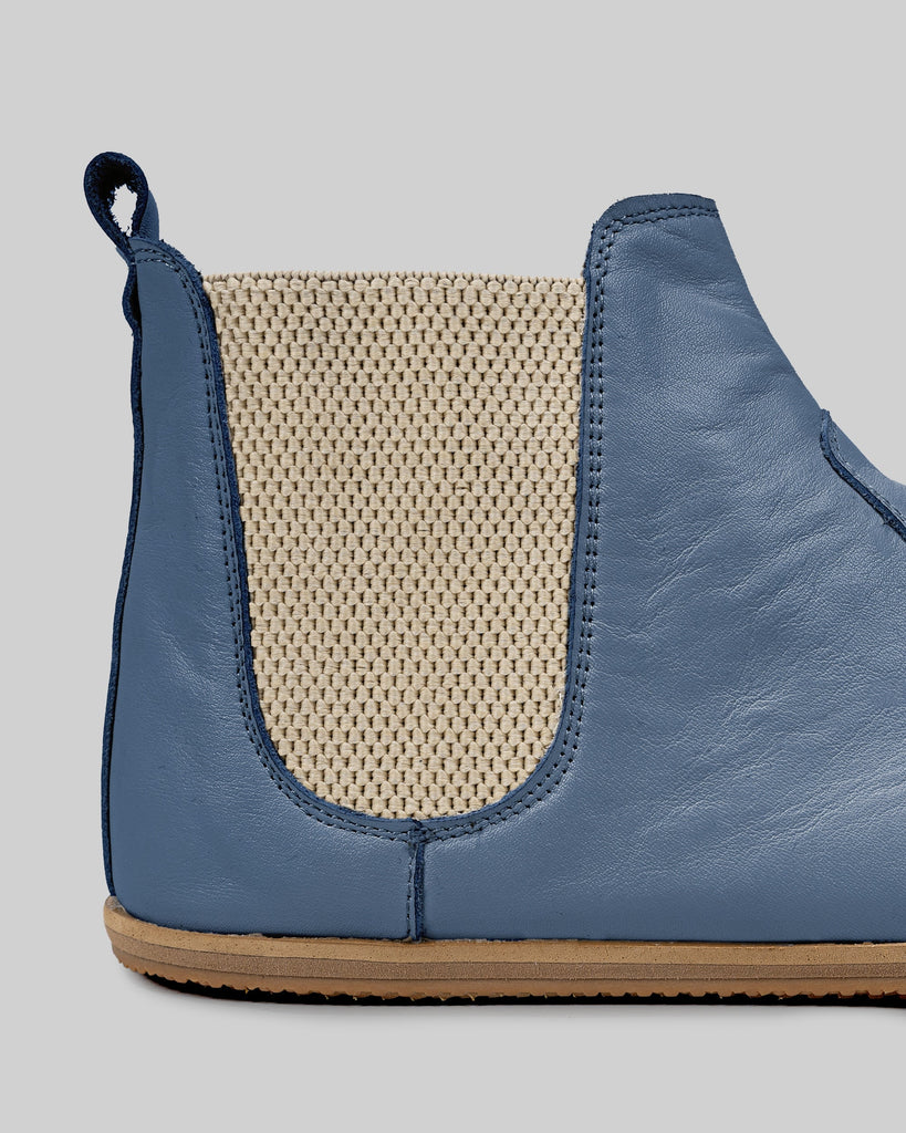 Cappadocia Jean Blue Color Artisan Handcrafted Genuine Leather Zero Drop Barefoot Chelsea Boot For Women | Wide Toe Box | Flexible Sole | Zero Drop | Lightweight | Breathable | Eco-Friendly | Grounding Shoes | Minimalist Shoes