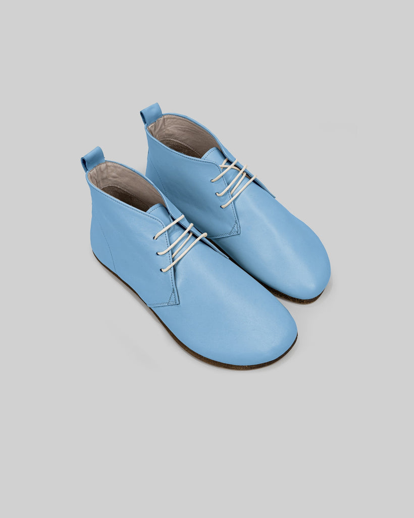 Galata Baby Blue Color Artisan Handcrafted Genuine Leather Zero Drop Barefoot Ankle Boot For Women | Wide Toe Box | Flexible Sole | Zero Drop | Lightweight | Breathable | Eco-Friendly | Grounding Shoes | Minimalist Shoes