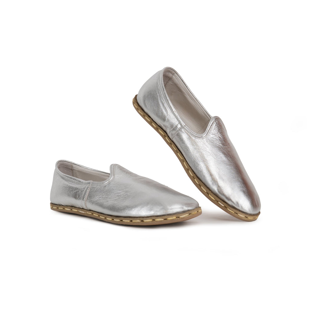 Ahmad Silver Color Artisan Handcrafted Genuine Leather Zero Drop Yemeni Shoes For Women | Wide Toe Box | Flexible Sole | Zero Drop | Lightweight | Breathable | Eco-Friendly | Grounding Shoes | Minimalist Shoes
