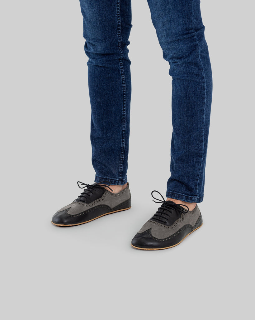 Step into timeless elegance and natural comfort with our handmade barefoot Oxford shoes, crafted in Istanbul, Turkey. Made from a refined combination of genuine leather and soft suede, these minimalist dress shoes bring together sophistication and barefoot freedom.