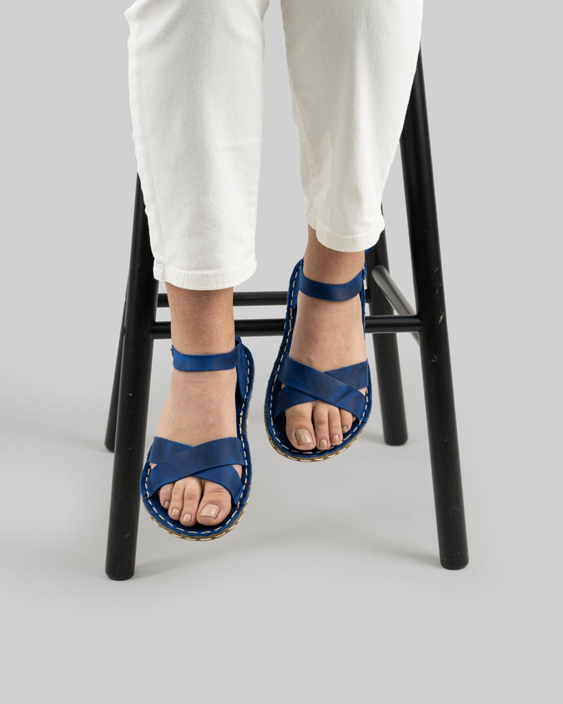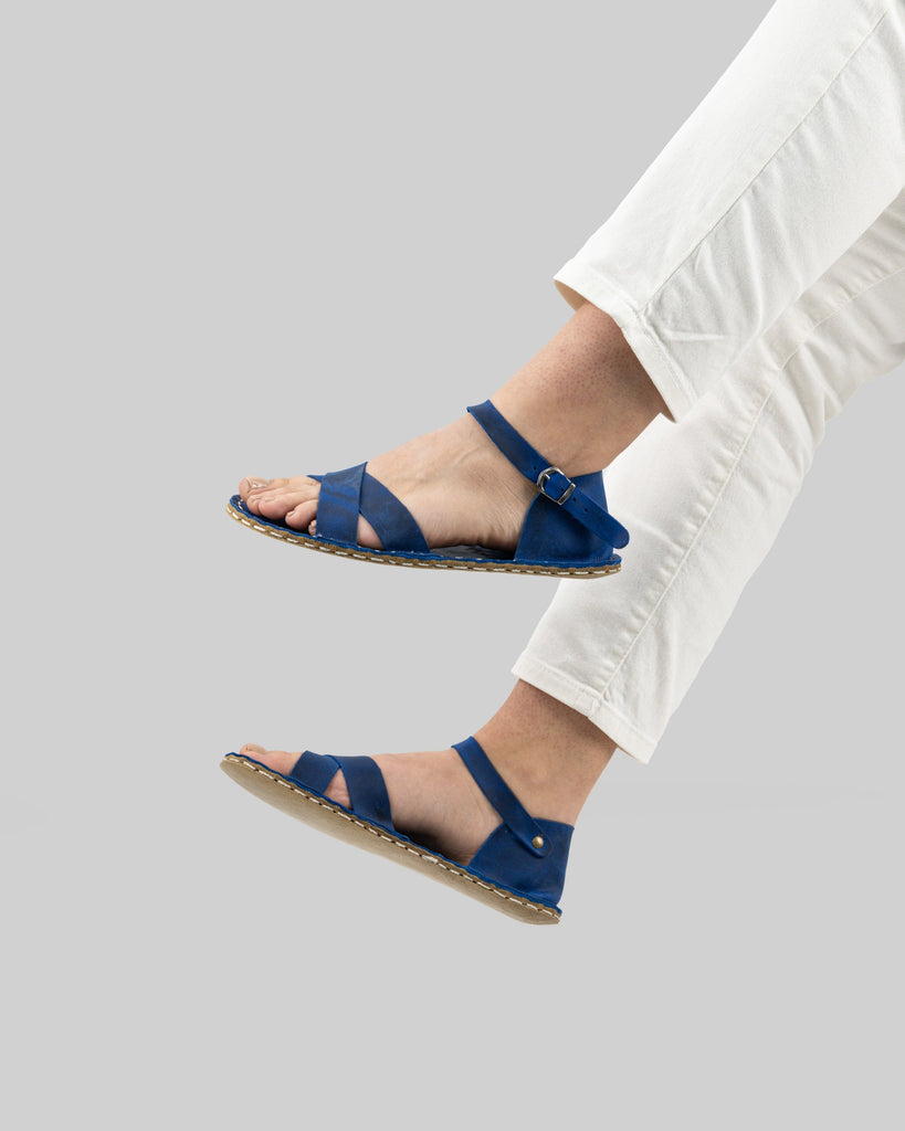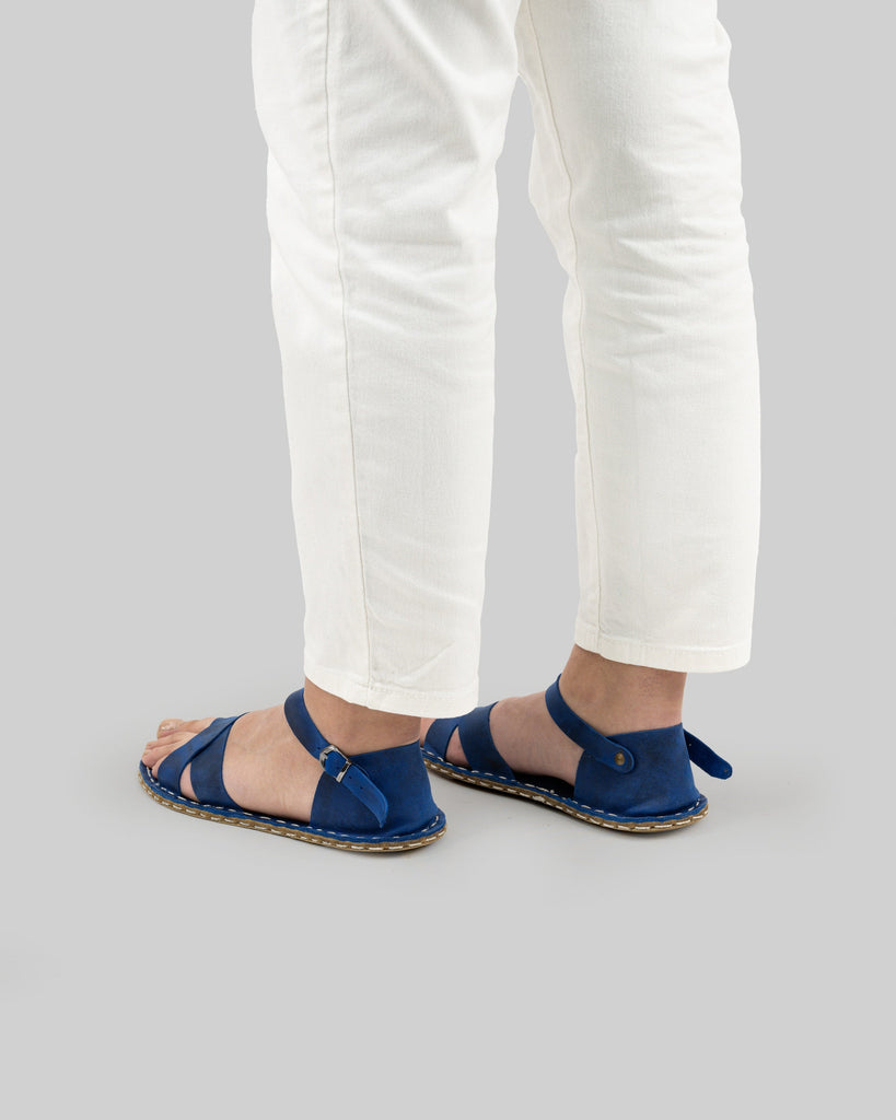 Balat Blue Color Artisan Handcrafted Genuine Leather Grounding Barefoot Sandal For Women | Wide Toe Box | Flexible Sole | Zero Drop | Lightweight | Breathable | Eco-Friendly | Grounding Shoes | Minimalist Shoes