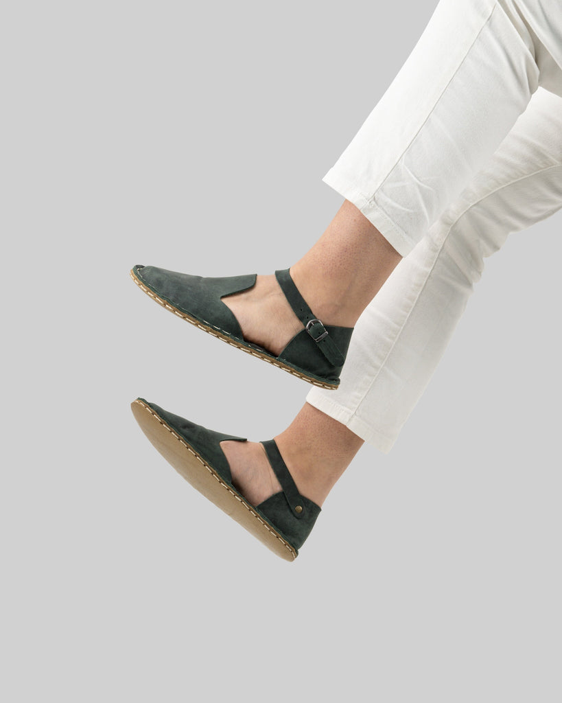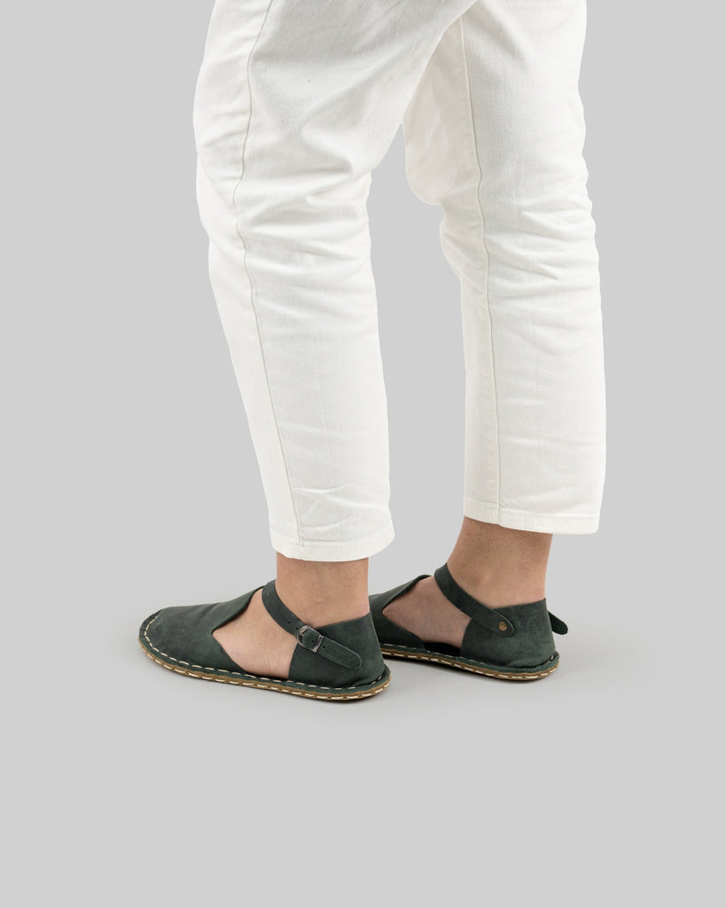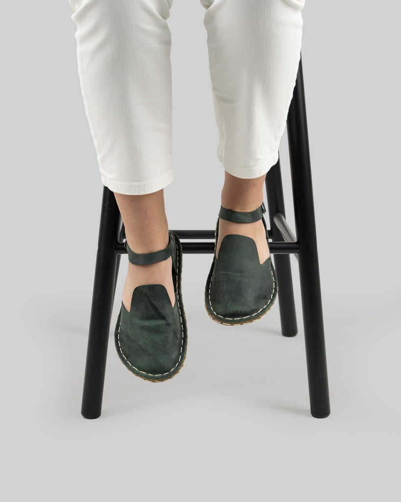 Balat Green Color Artisan Handcrafted Genuine Leather Grounding Barefoot Sandal For Women | Wide Toe Box | Flexible Sole | Zero Drop | Lightweight | Breathable | Eco-Friendly | Grounding Shoes | Minimalist Shoes