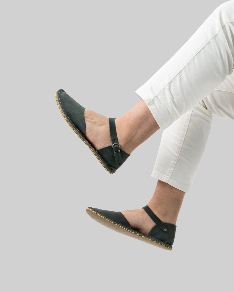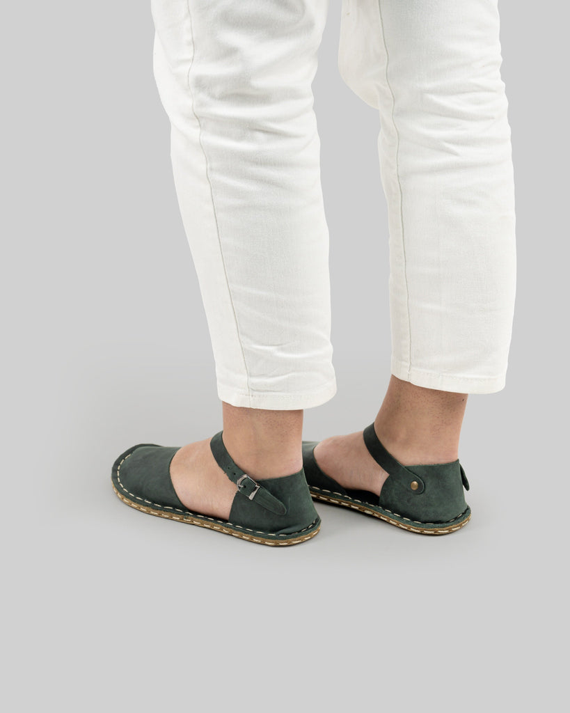 Balat Green Color Artisan Handcrafted Genuine Leather Grounding Barefoot Sandal For Women | Wide Toe Box | Flexible Sole | Zero Drop | Lightweight | Breathable | Eco-Friendly | Grounding Shoes | Minimalist Shoes