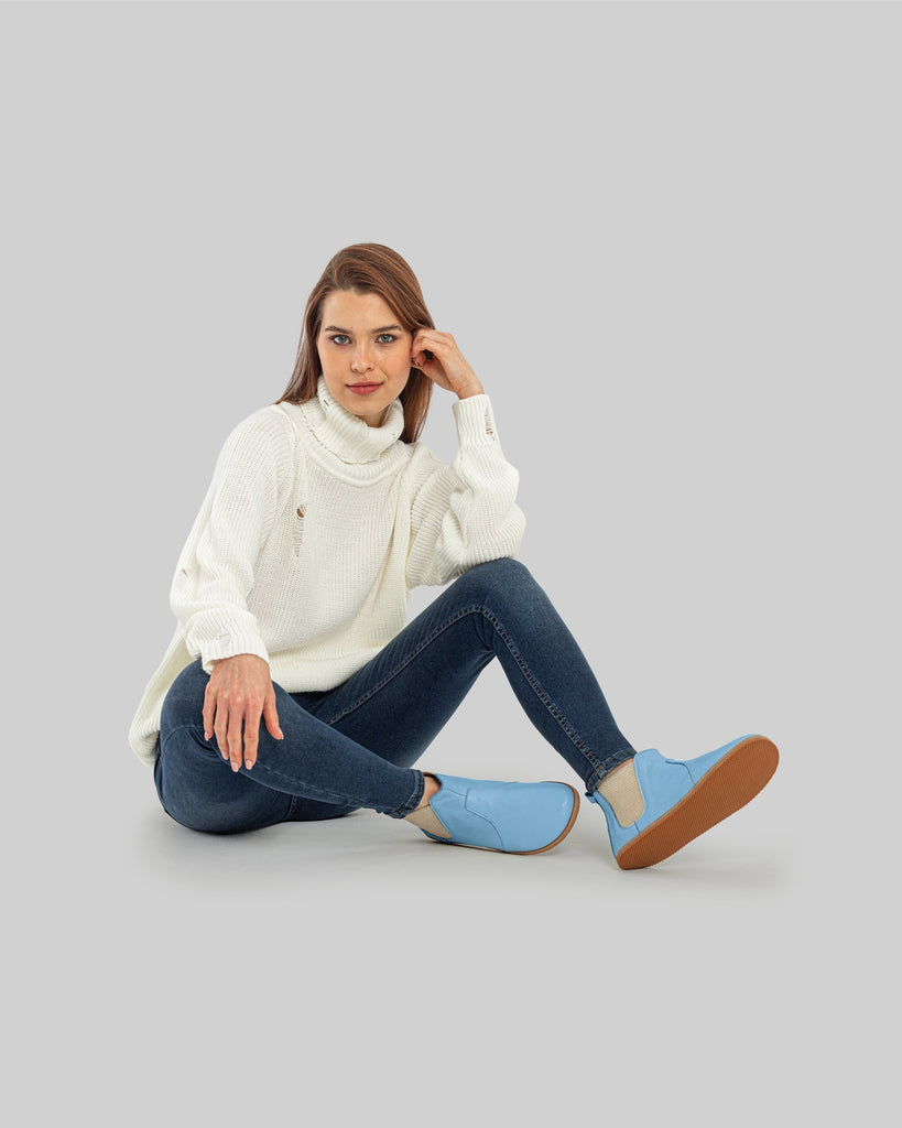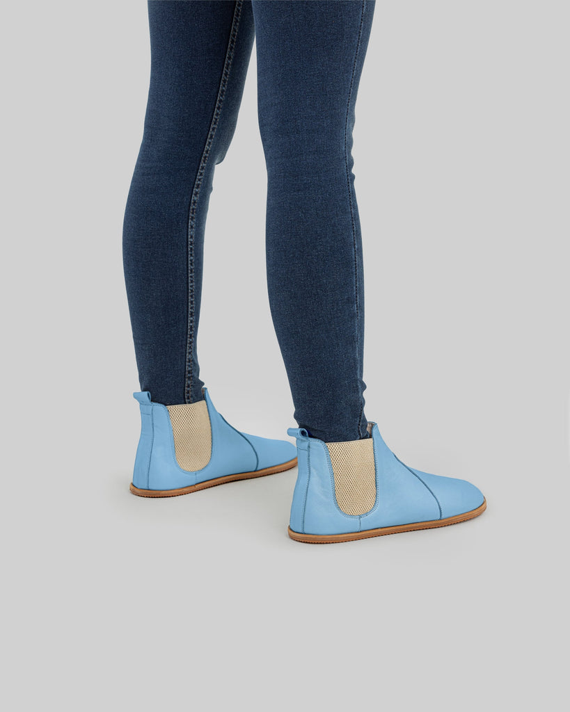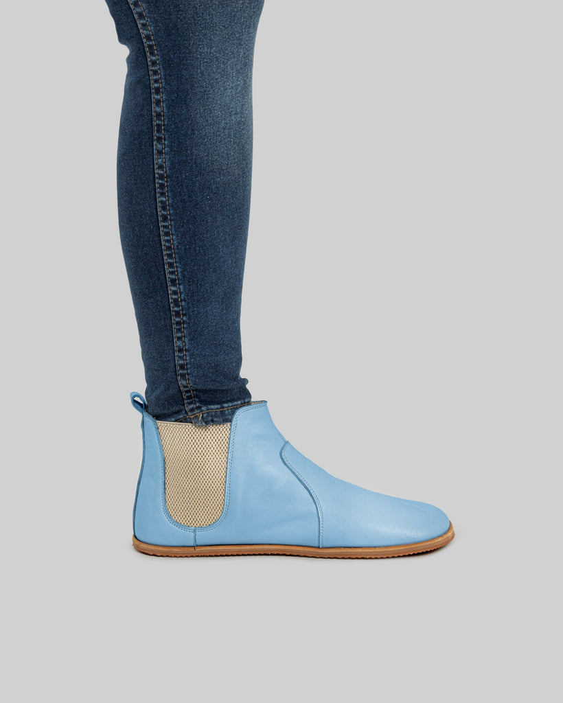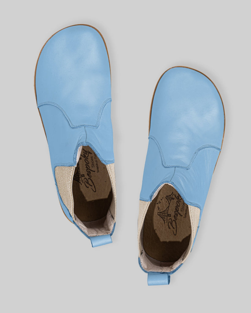 Cappadocia Baby Blue Color Artisan Handcrafted Genuine Leather Zero Drop Barefoot Chelsea Boot For Women | Wide Toe Box | Flexible Sole | Zero Drop | Lightweight | Breathable | Eco-Friendly | Grounding Shoes | Minimalist Shoes