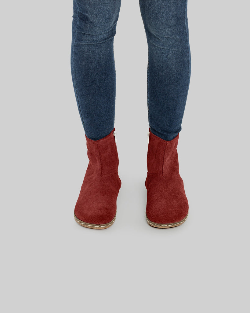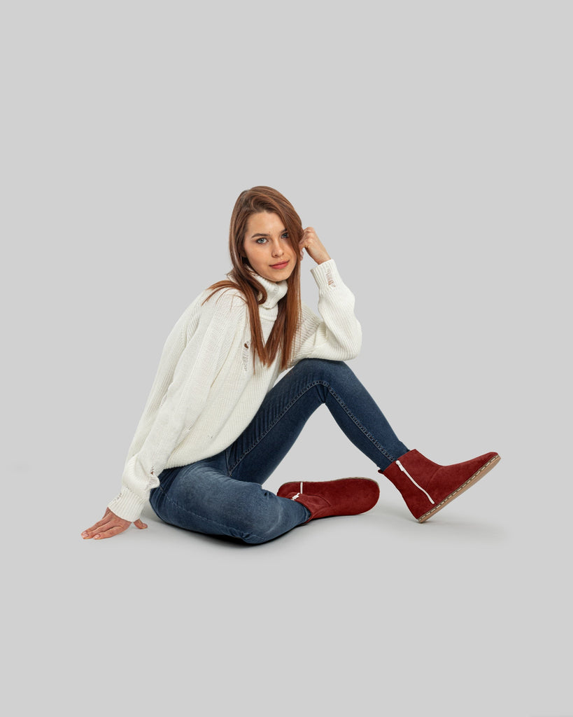 Cappadocia Burgundy Color Artisan Handcrafted Genuine Leather Zero Drop Barefoot Chelsea Boot For Women | Wide Toe Box | Flexible Sole | Zero Drop | Lightweight | Breathable | Eco-Friendly | Grounding Shoes | Minimalist Shoes