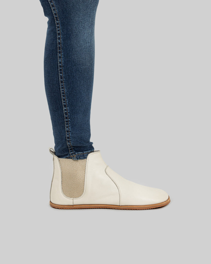 Cappadocia Cream Leather Color Artisan Handcrafted Genuine Leather Zero Drop Barefoot Chelsea Boot For Women | Wide Toe Box | Flexible Sole | Zero Drop | Lightweight | Breathable | Eco-Friendly | Grounding Shoes | Minimalist Shoes