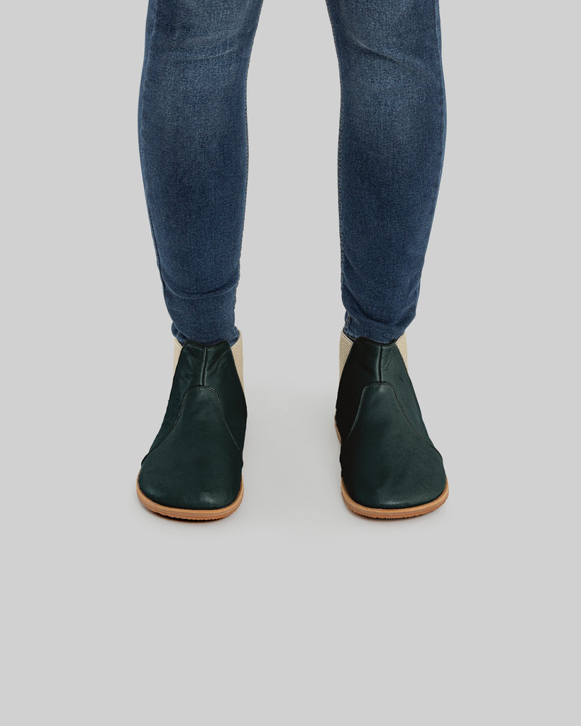 Cappadocia Dark Green Color Artisan Handcrafted Genuine Leather Zero Drop Barefoot Chelsea Boot For Women | Wide Toe Box | Flexible Sole | Zero Drop | Lightweight | Breathable | Eco-Friendly | Grounding Shoes | Minimalist Shoes