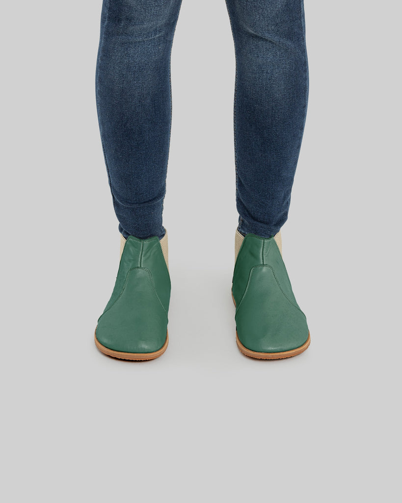Cappadocia Green Color Artisan Handcrafted Genuine Leather Zero Drop Barefoot Chelsea Boot For Women | Wide Toe Box | Flexible Sole | Zero Drop | Lightweight | Breathable | Eco-Friendly | Grounding Shoes | Minimalist Shoes