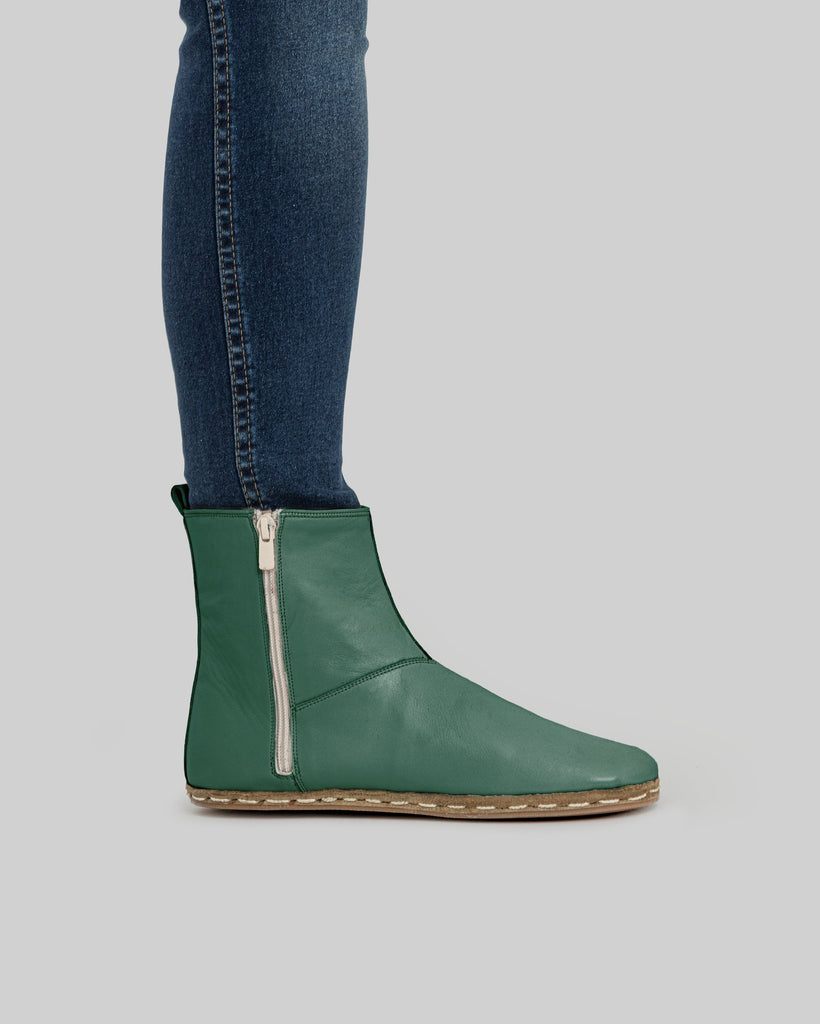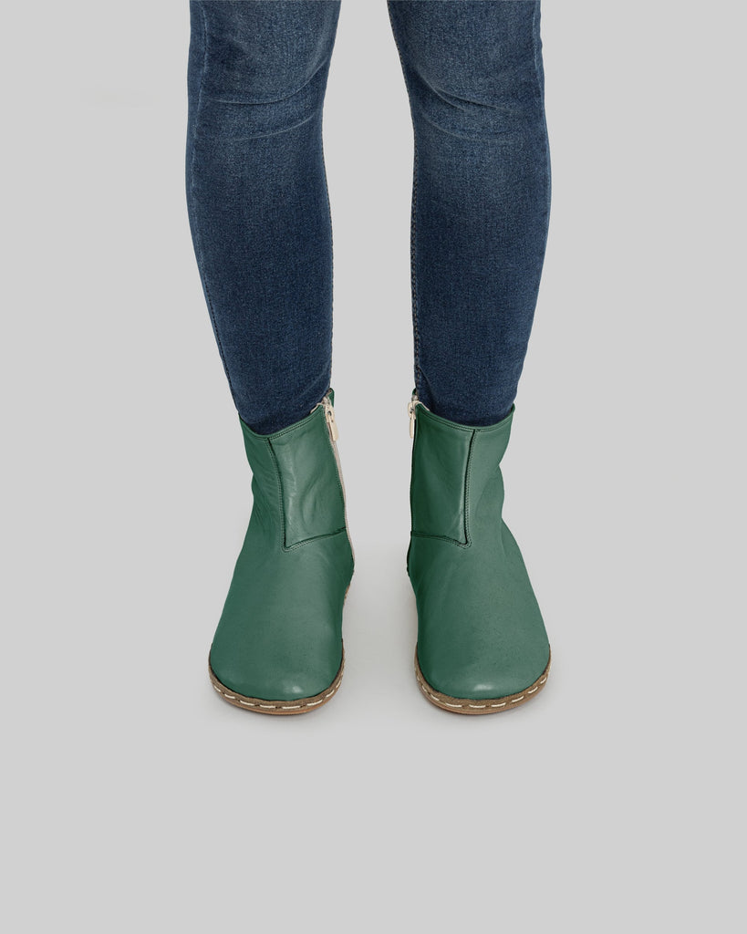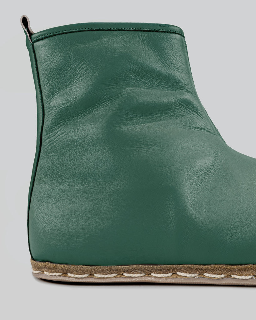 Cappadocia Green Color Artisan Handcrafted Genuine Leather Zero Drop Barefoot Chelsea Boot For Women | Wide Toe Box | Flexible Sole | Zero Drop | Lightweight | Breathable | Eco-Friendly | Grounding Shoes | Minimalist Shoes