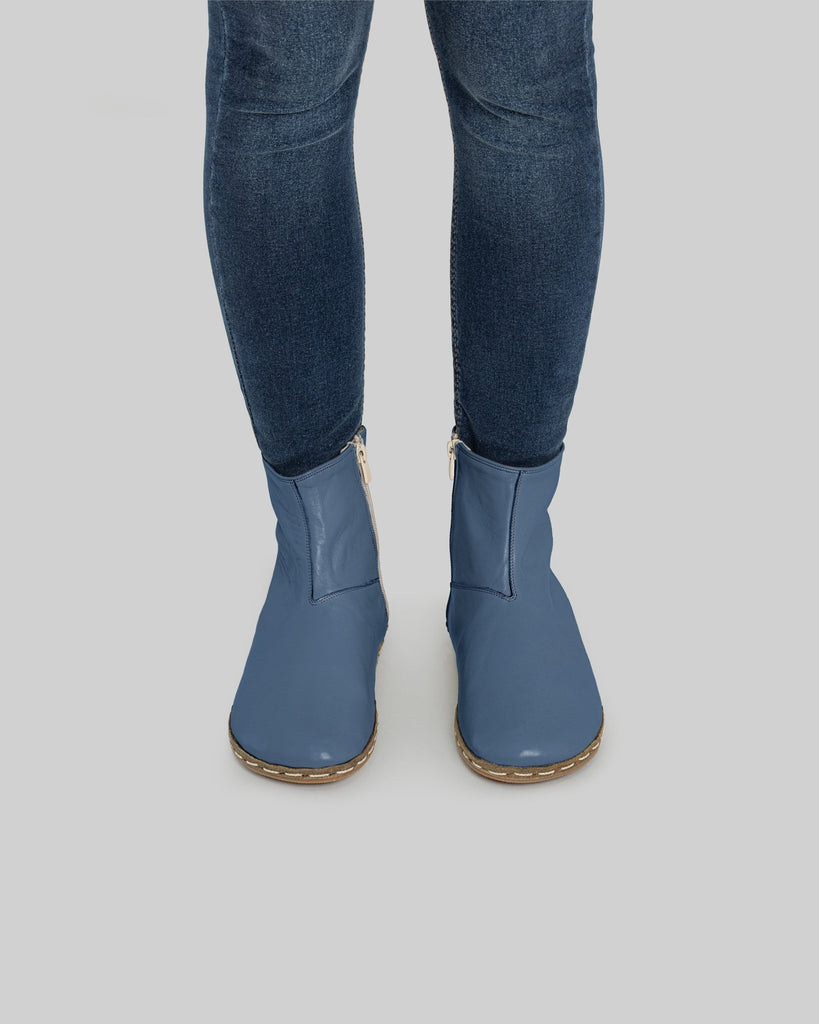 Cappadocia Jean Blue Color Artisan Handcrafted Genuine Leather Zero Drop Barefoot Chelsea Boot For Women | Wide Toe Box | Flexible Sole | Zero Drop | Lightweight | Breathable | Eco-Friendly | Grounding Shoes | Minimalist Shoes