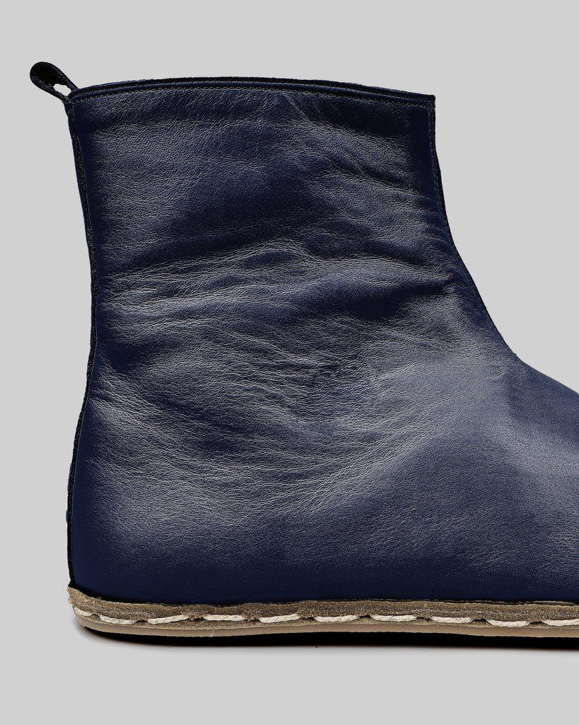 Cappadocia Navy Blue Color Artisan Handcrafted Genuine Leather Zero Drop Barefoot Chelsea Boot For Women | Wide Toe Box | Flexible Sole | Zero Drop | Lightweight | Breathable | Eco-Friendly | Grounding Shoes | Minimalist Shoes