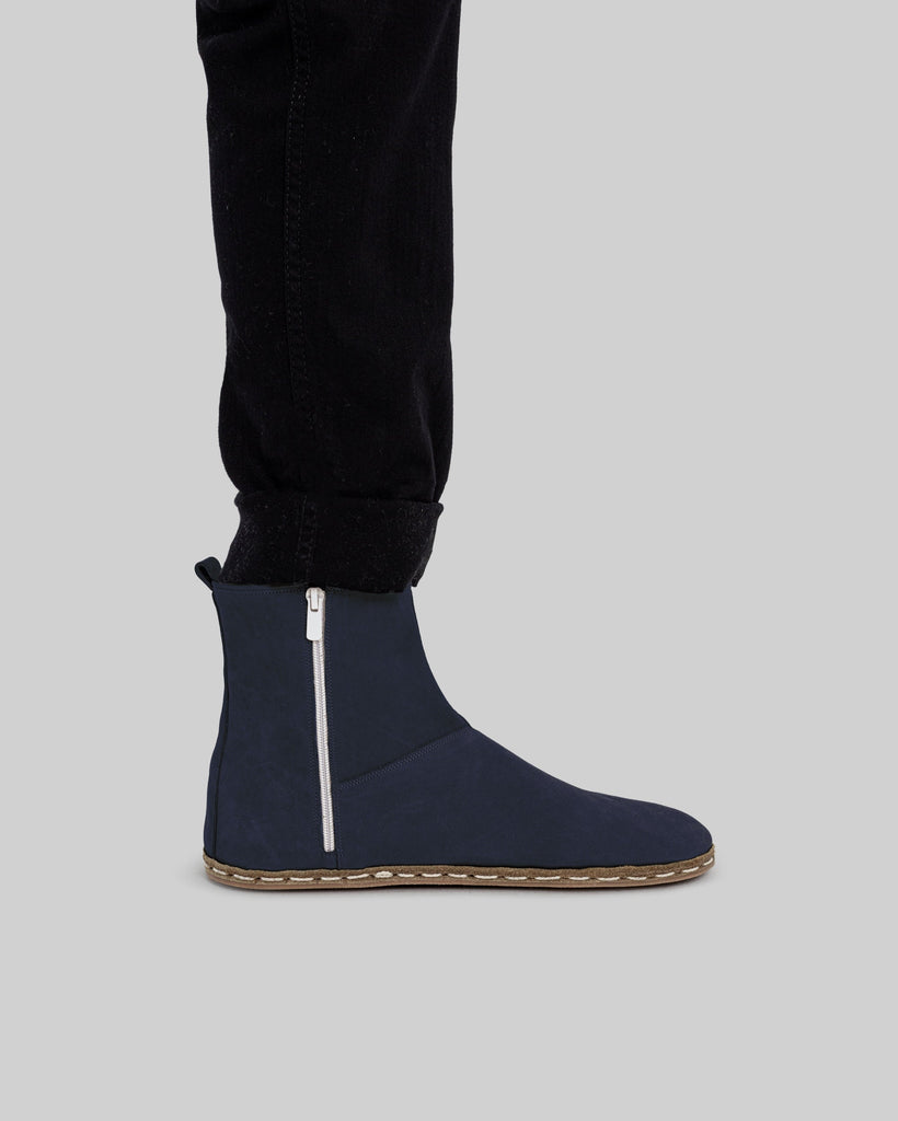 Cappadocia Navy Color Artisan Handcrafted Nubuck Genuine Leather Zero Drop Barefoot Chelsea Boot For Men | Wide Toe Box | Flexible Sole | Zero Drop | Lightweight | Breathable | Eco-Friendly | Grounding Shoes | Minimalist Shoes