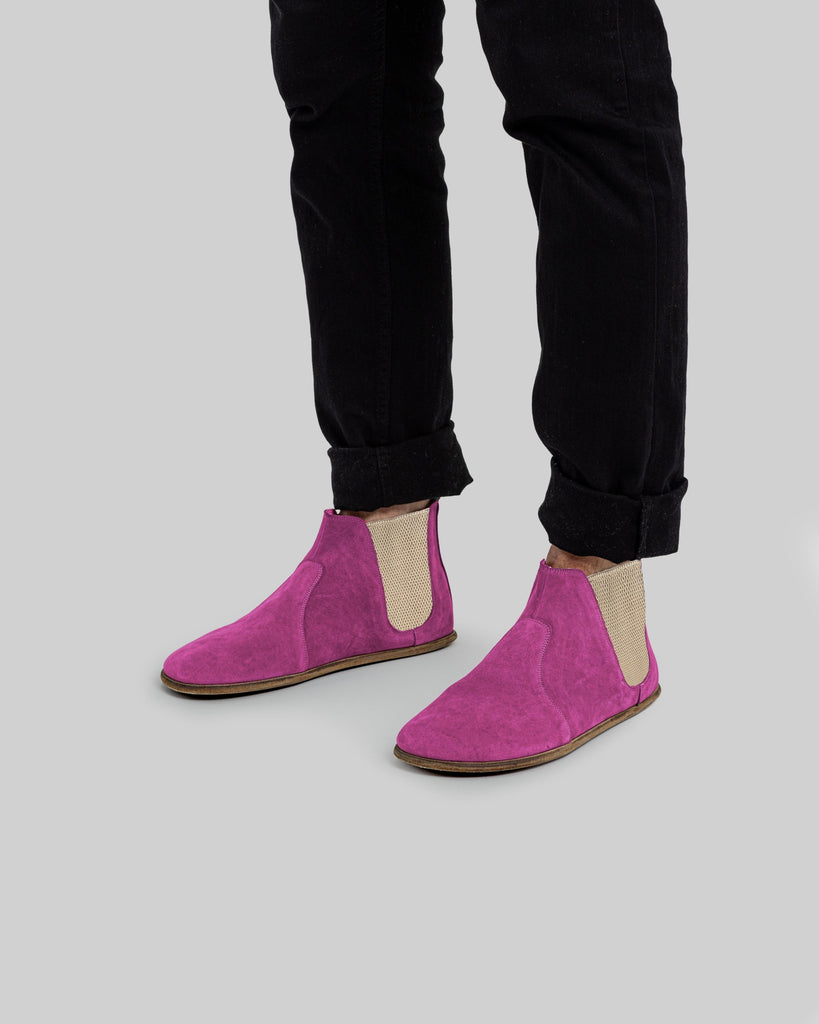 Cappadocia Pink Color Artisan Handcrafted Nubuck Genuine Leather Grounding Barefoot Chelsea Boot For Men | Wide Toe Box | Flexible Sole | Zero Drop | Lightweight | Breathable | Eco-Friendly | Grounding Shoes | Minimalist Shoes