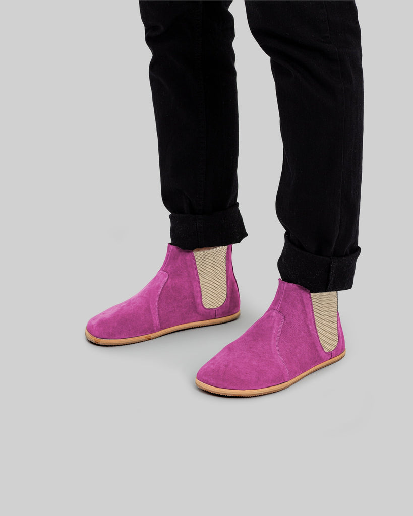 Cappadocia Pink Color Artisan Handcrafted Nubuck Genuine Leather Zero Drop Barefoot Chelsea Boot For Men | Wide Toe Box | Flexible Sole | Zero Drop | Lightweight | Breathable | Eco-Friendly | Grounding Shoes | Minimalist Shoes