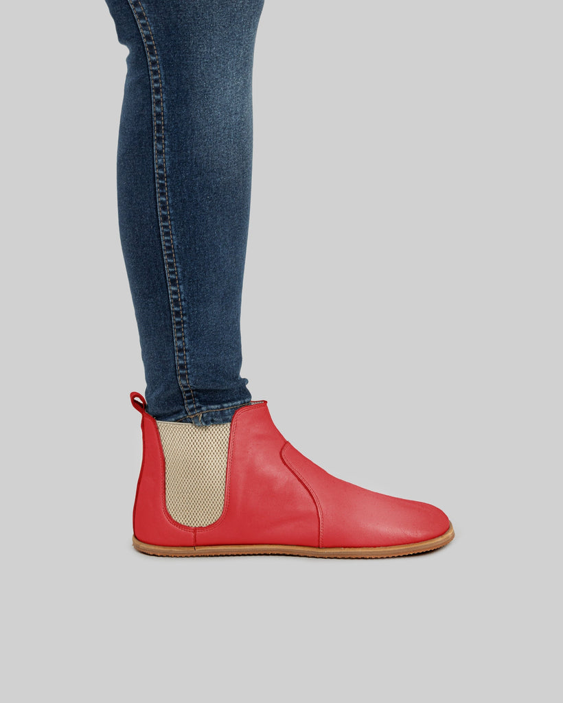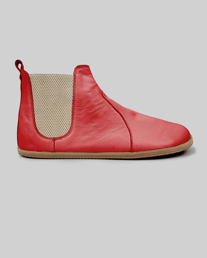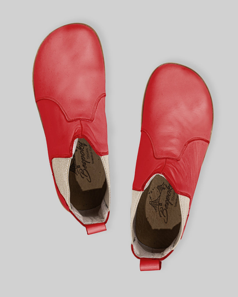 Cappadocia Red Color Artisan Handcrafted Genuine Leather Zero Drop Barefoot Chelsea Boot For Women | Wide Toe Box | Flexible Sole | Zero Drop | Lightweight | Breathable | Eco-Friendly | Grounding Shoes | Minimalist Shoes