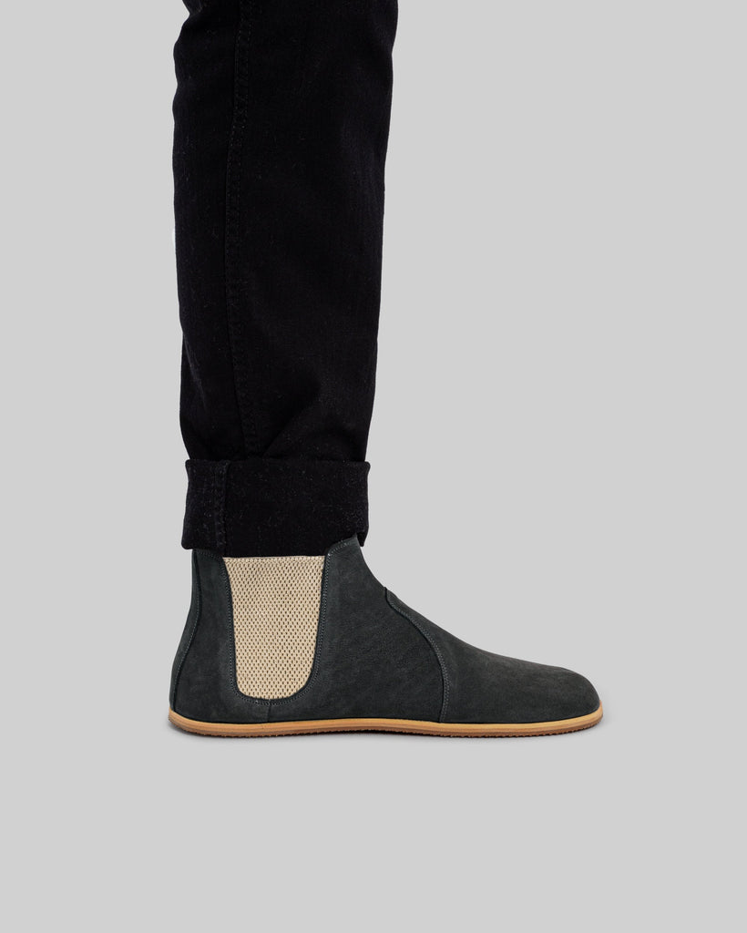 Cappadocia Smoked Color Artisan Handcrafted Nubuck Genuine Leather Zero Drop Barefoot Chelsea Boot For Men | Wide Toe Box | Flexible Sole | Zero Drop | Lightweight | Breathable | Eco-Friendly | Grounding Shoes | Minimalist Shoes