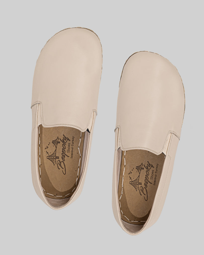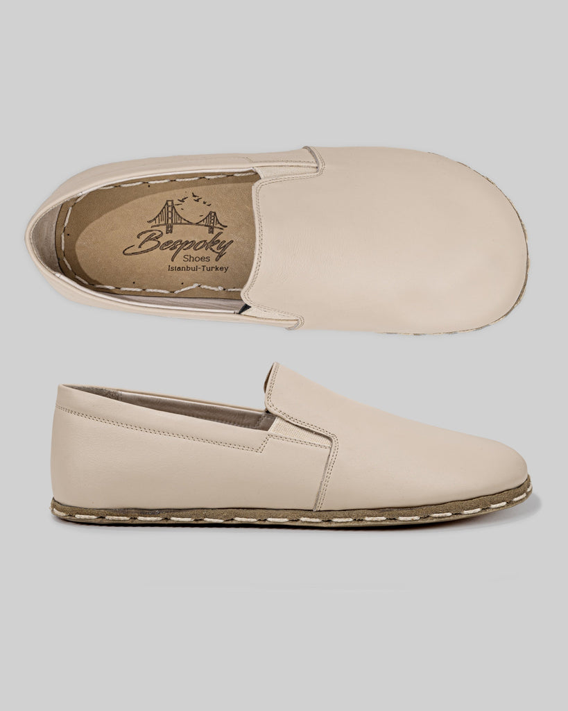 Eminonu Beige Color Artisan Handcrafted Genuine Leather Grounding Barefoot Shoes For Men | Wide Toe Box | Flexible Sole | Zero Drop | Lightweight | Breathable | Eco-Friendly | Grounding Shoes | Minimalist Shoes