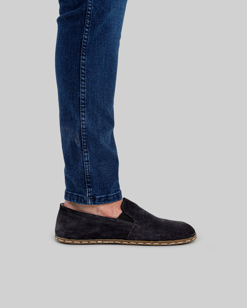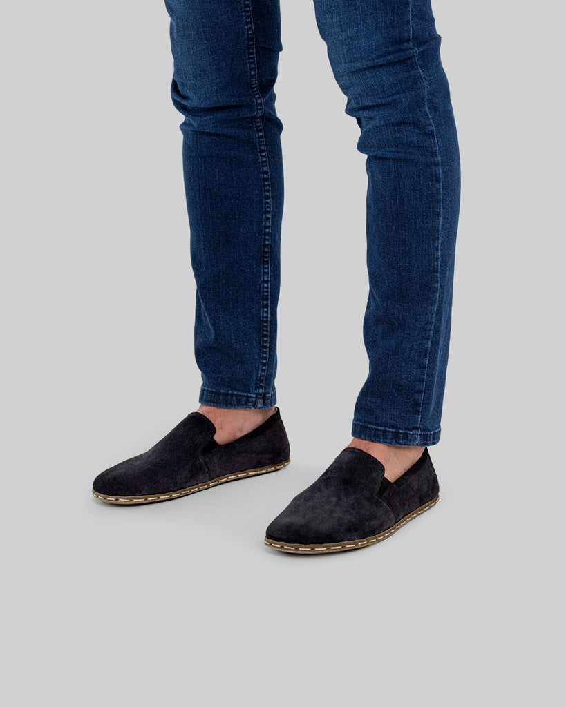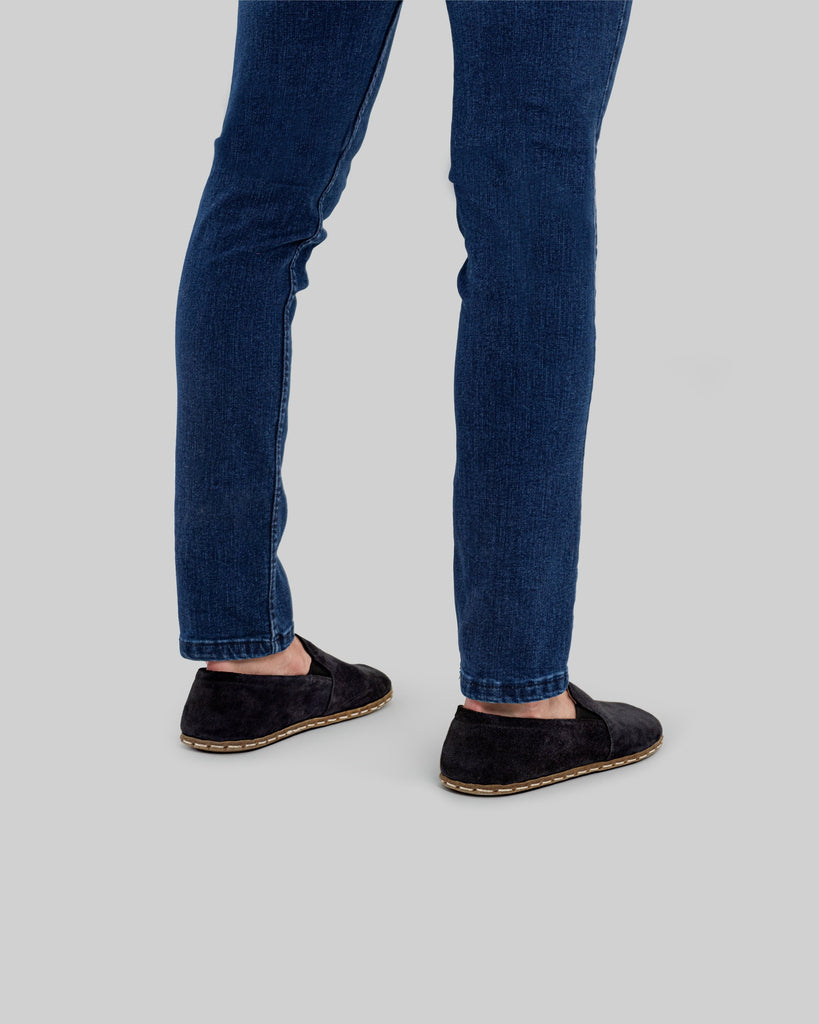 Eminonu Black Color Artisan Handcrafted Suede Genuine Leather Grounding Barefoot Shoes For Men | Wide Toe Box | Flexible Sole | Zero Drop | Lightweight | Breathable | Eco-Friendly | Grounding Shoes | Minimalist Shoes