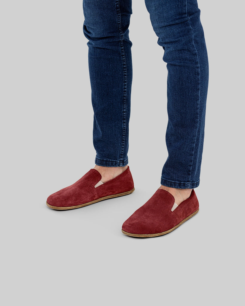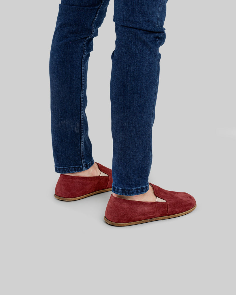 Eminonu Burgundy Color Artisan Handcrafted Suede Genuine Leather Grounding Barefoot Shoes For Men | Wide Toe Box | Flexible Sole | Zero Drop | Lightweight | Breathable | Eco-Friendly | Grounding Shoes | Minimalist Shoes