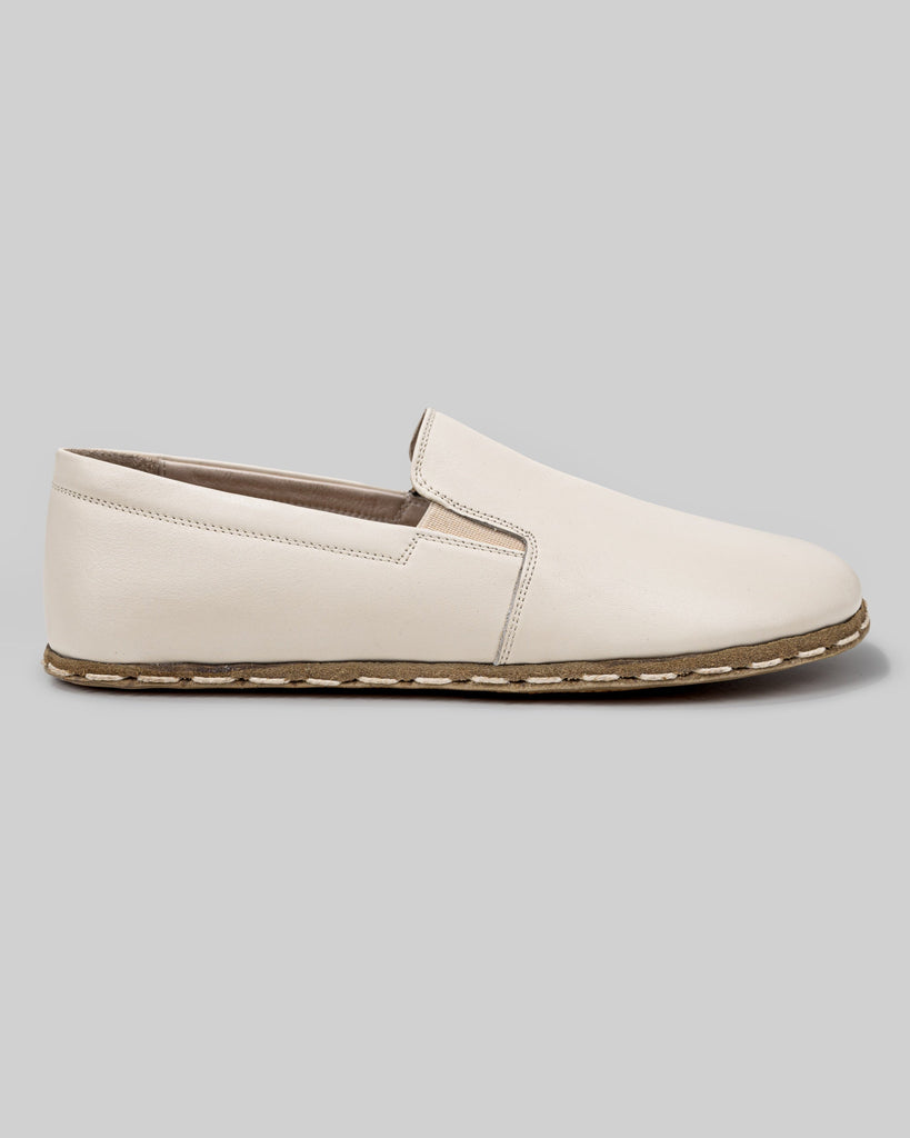Eminonu Cream Leather Color Artisan Handcrafted Genuine Leather Grounding Barefoot Shoes For Men | Wide Toe Box | Flexible Sole | Zero Drop | Lightweight | Breathable | Eco-Friendly | Grounding Shoes | Minimalist Shoes