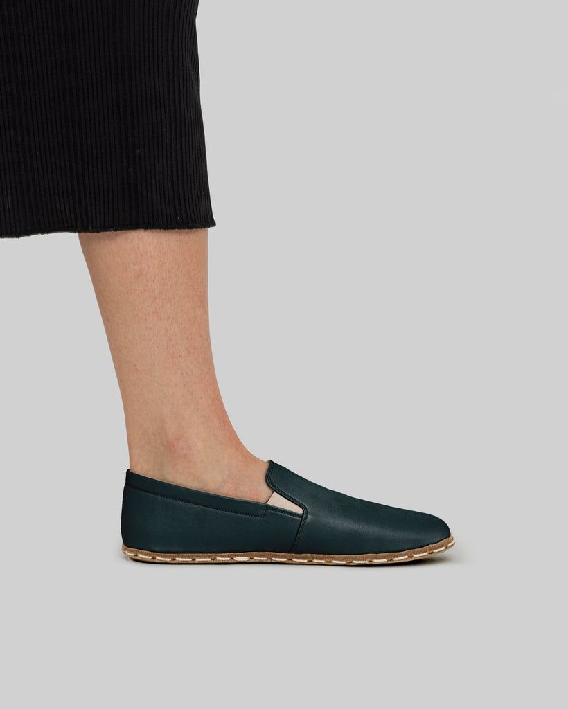 Eminonu Dark Green Color Artisan Handcrafted Genuine Leather Grounding Barefoot Shoes For Men | Wide Toe Box | Flexible Sole | Zero Drop | Lightweight | Breathable | Eco-Friendly | Grounding Shoes | Minimalist Shoes