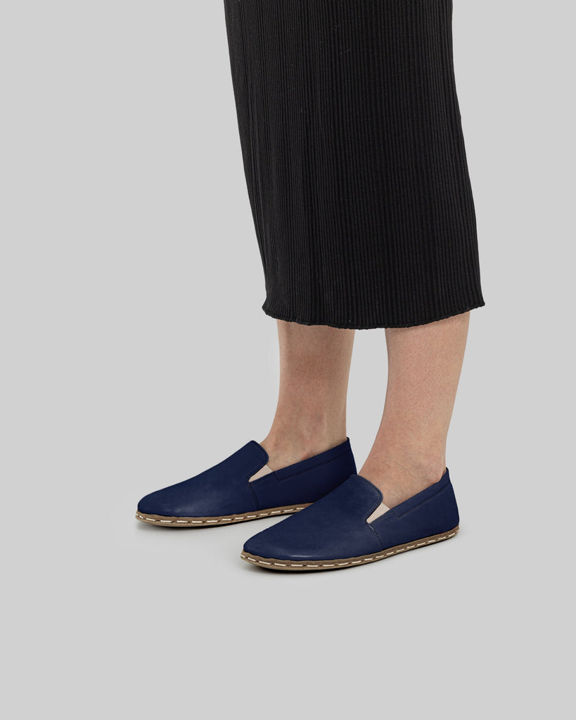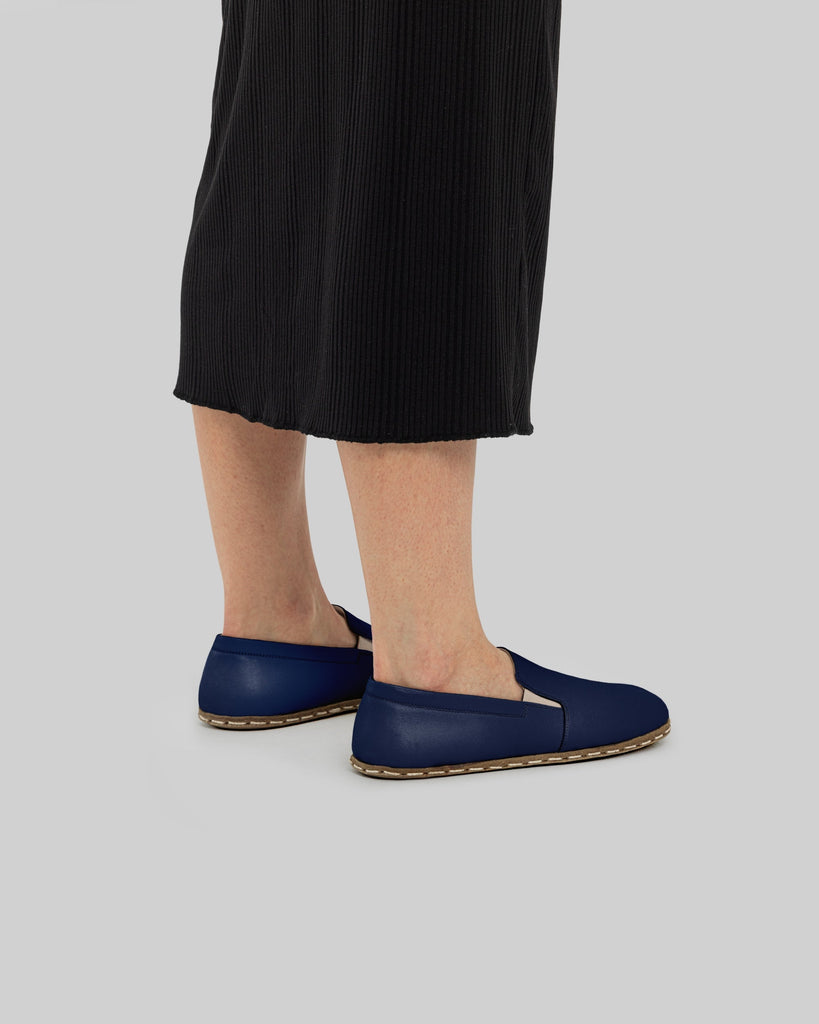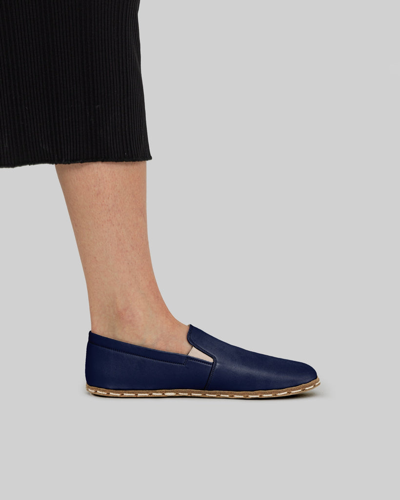 Eminonu Navy Blue Color Artisan Handcrafted Genuine Leather Grounding Barefoot Shoes For Women | Wide Toe Box | Flexible Sole | Zero Drop | Lightweight | Breathable | Eco-Friendly | Grounding Shoes | Minimalist Shoes