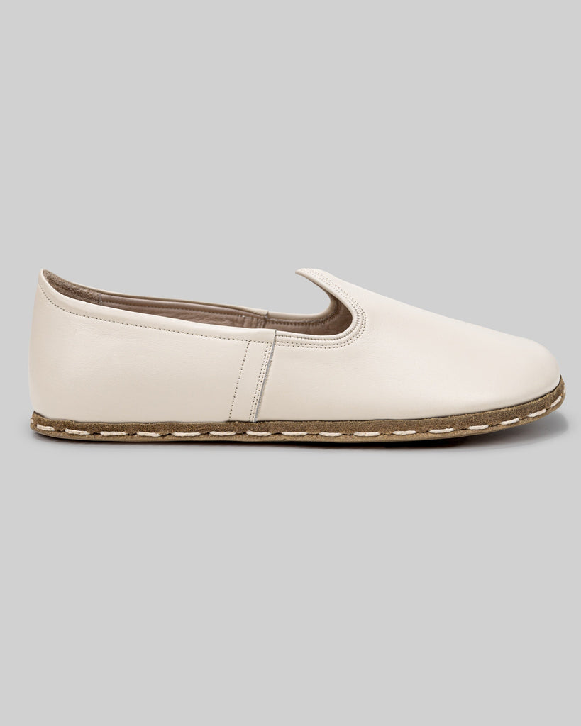 Ephesus Cream Leather Color Artisan Handcrafted Genuine Leather Zero Drop Barefoot Yemeni For Women | Wide Toe Box | Flexible Sole | Zero Drop | Lightweight | Breathable | Eco-Friendly | Grounding Shoes | Minimalist Shoes
