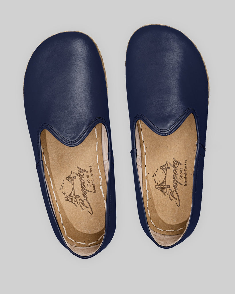 Ephesus Navy Blue Color Artisan Handcrafted Genuine Leather Zero Drop Barefoot Yemeni For Men | Wide Toe Box | Flexible Sole | Zero Drop | Lightweight | Breathable | Eco-Friendly | Grounding Shoes | Minimalist Shoes
