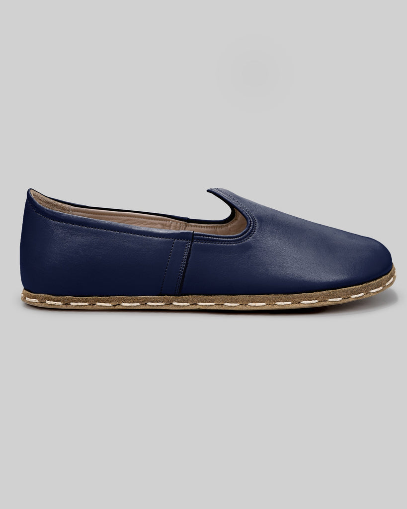 Ephesus Navy Blue Color Artisan Handcrafted Genuine Leather Zero Drop Barefoot Yemeni For Women | Wide Toe Box | Flexible Sole | Zero Drop | Lightweight | Breathable | Eco-Friendly | Grounding Shoes | Minimalist Shoes
