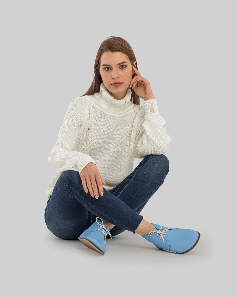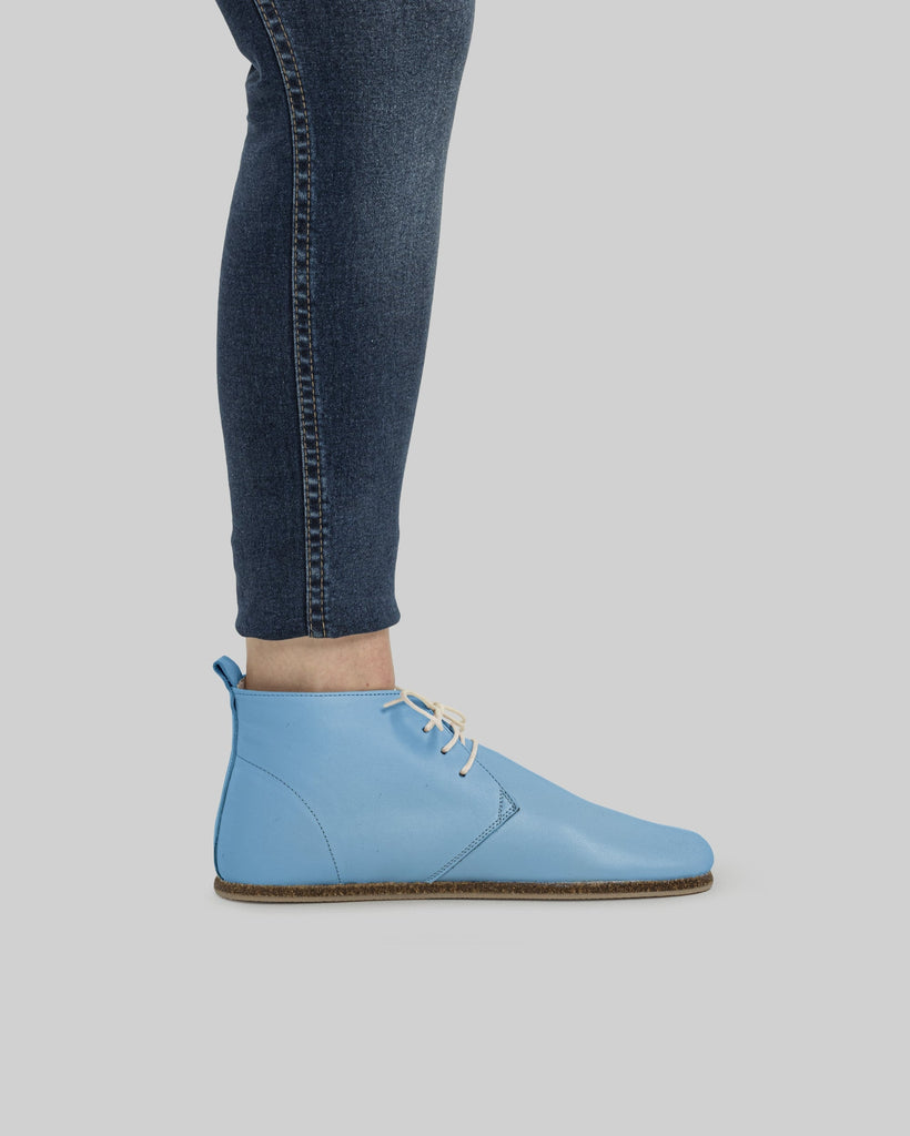 Galata Baby Blue Color Artisan Handcrafted Genuine Leather Zero Drop Barefoot Ankle Boot For Women | Wide Toe Box | Flexible Sole | Zero Drop | Lightweight | Breathable | Eco-Friendly | Grounding Shoes | Minimalist Shoes
